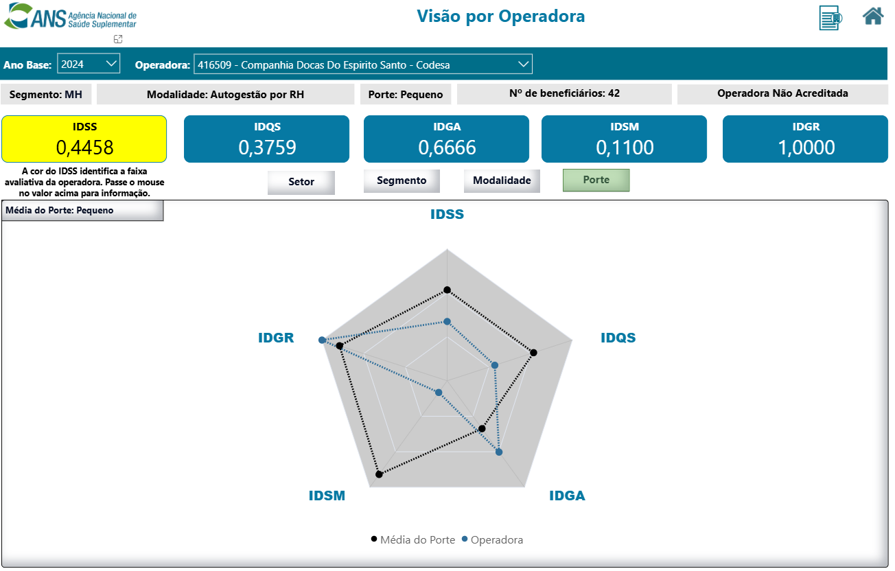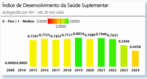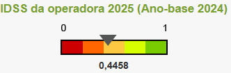 A pontuação da Operadora no ano-base 2024 ficou em 0,4458. Nota máxima é 1.